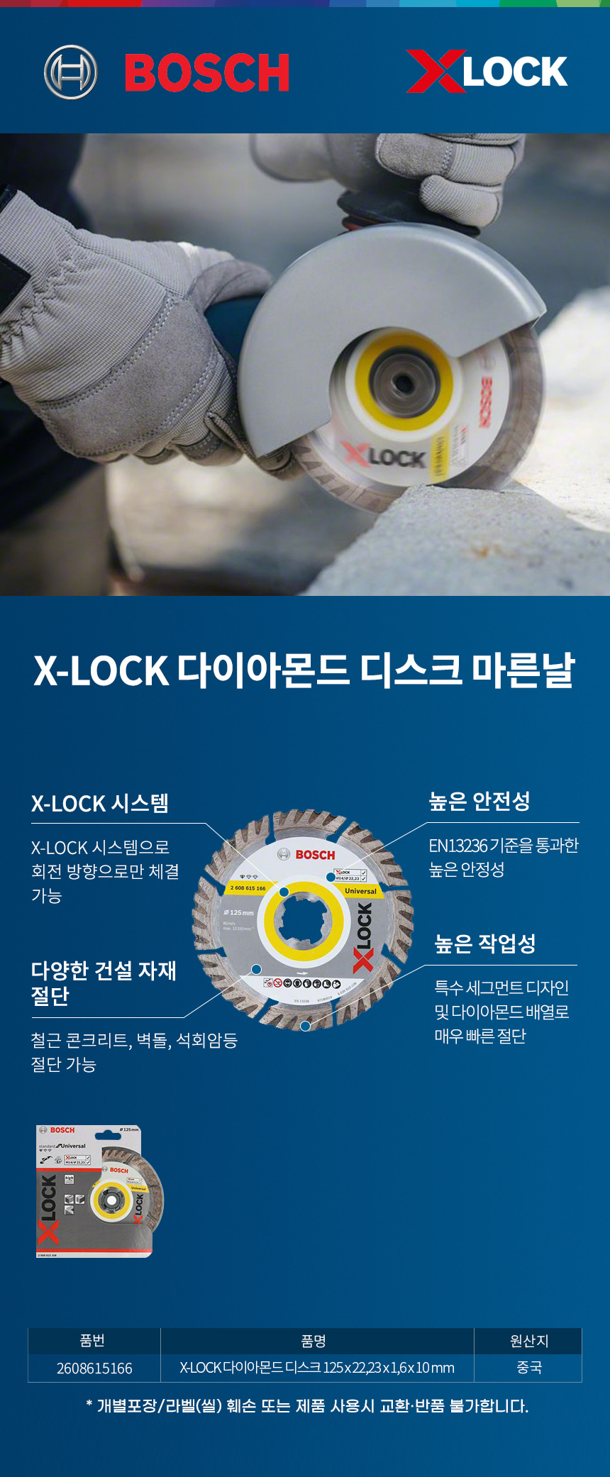 보쉬 XLOCK 전용 5인치 다이아몬드 컷팅 디스크 2608615166 절단석 그라인더날 타일 콘크리트 대리석