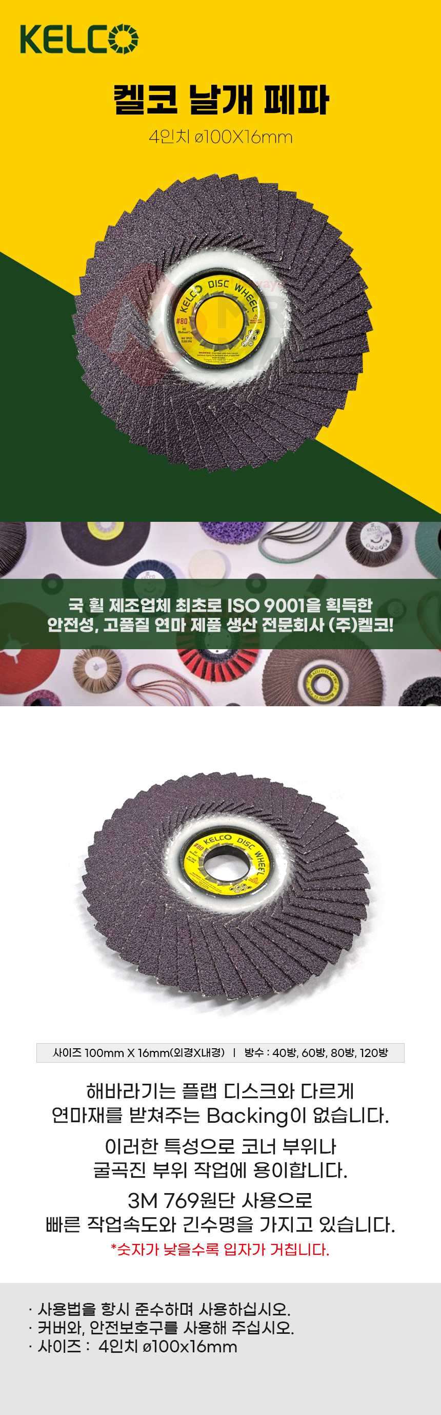 켈코 4인치 769f 해바라기 날개 페파 사포 그라인더용 디스크휠 그라인더날