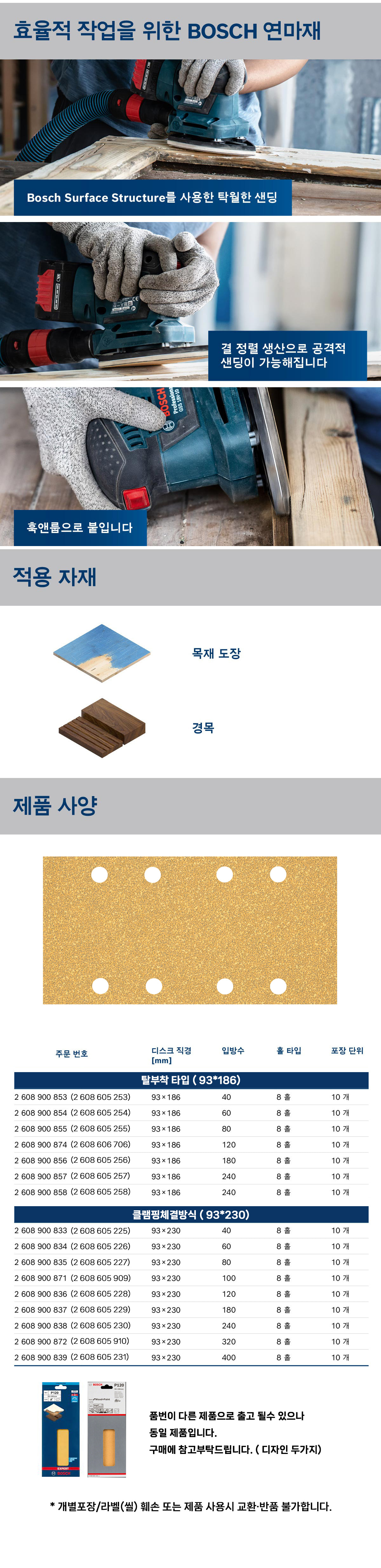 보쉬 EXPERT ExC470 사포 사각 샌딩 페이퍼 시트 93X230 10매 클램핑 체결 방식 오비탈 샌더용 목재 페인트