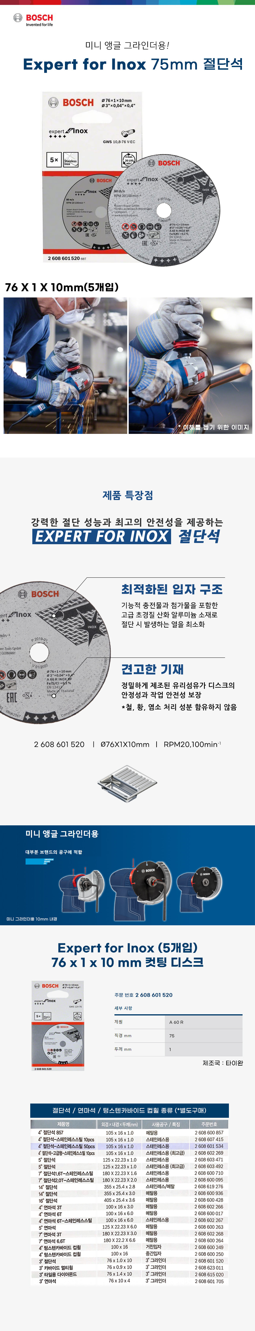 보쉬 3인치 절단석 5p 그라인더날 컷팅날 2608601520 스텐 스테인레스 커팅 절단