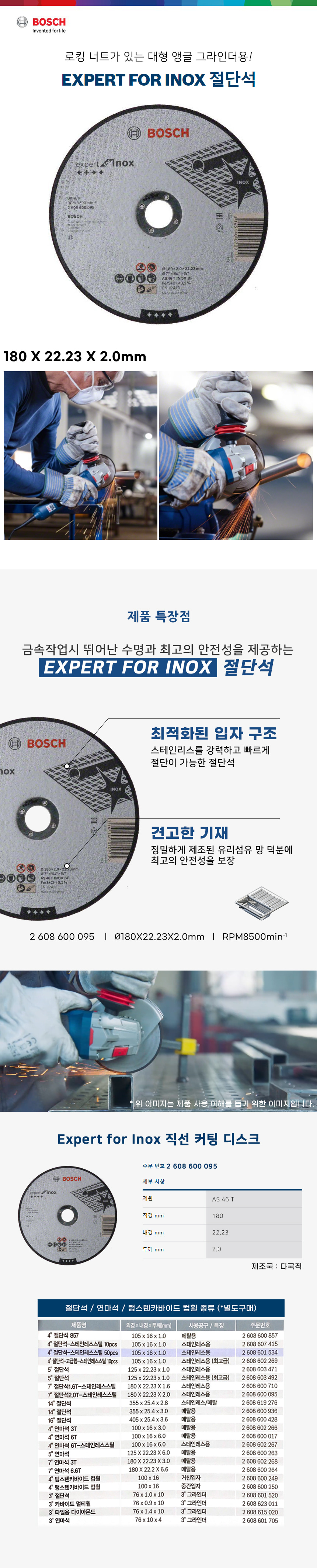 보쉬 7인치 절단석 2.0T 그라인더날 컷팅날 2608600095 스텐 스테인레스