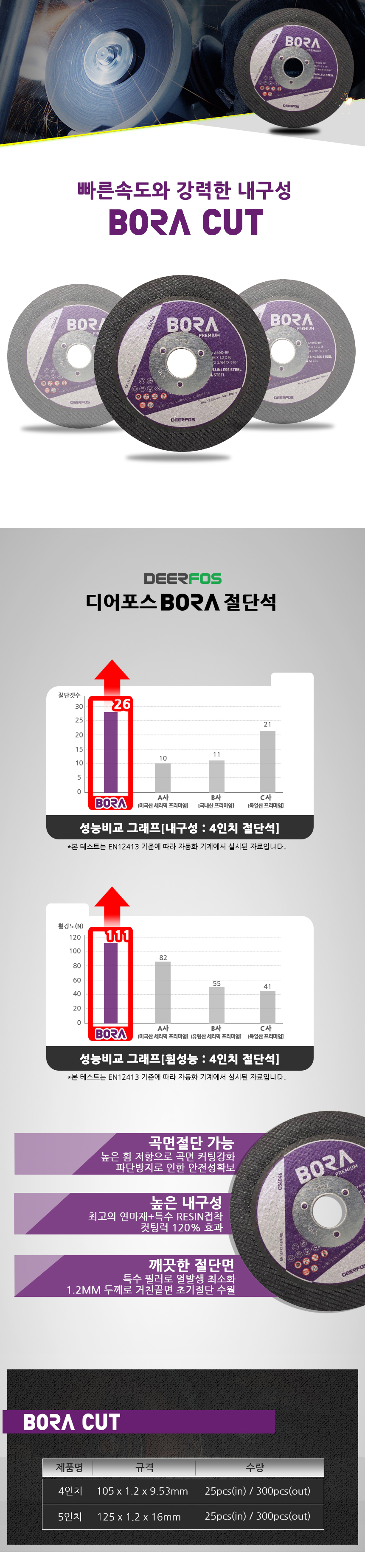 디어포스 보라 컷 4인치 5인치 절단석 그라인더날