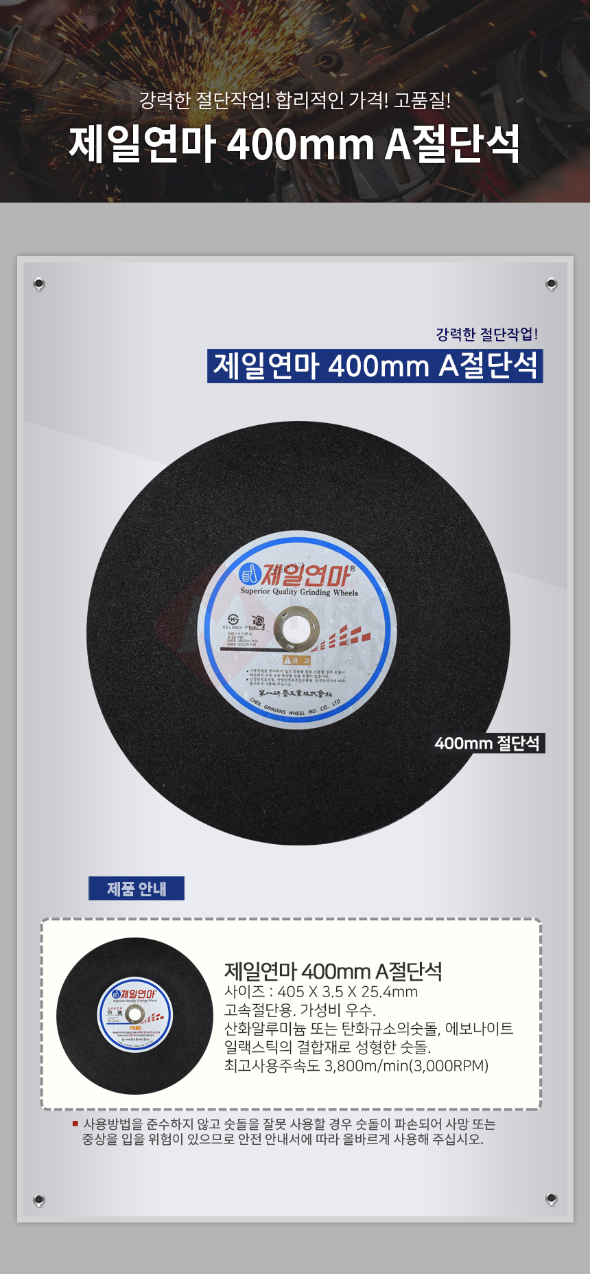 제일연마 16인치 A절단석 고속절단용 컷팅날 고속날 고속절단기