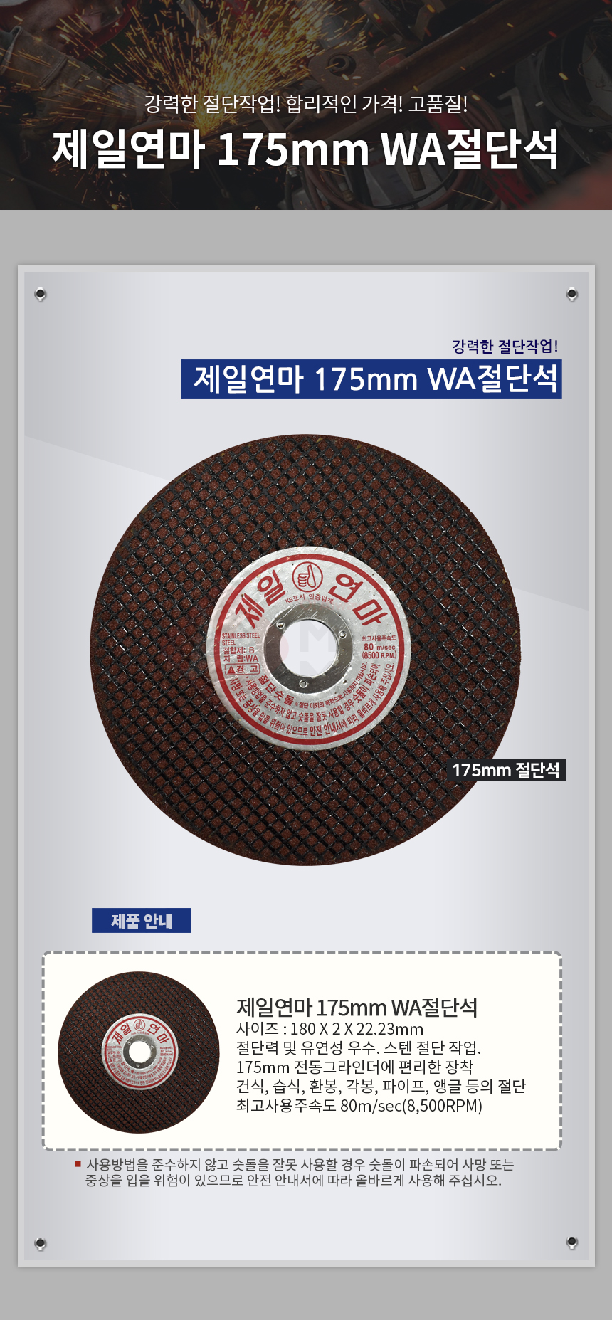 제일연마 7인치 WA절단석 그라인더날