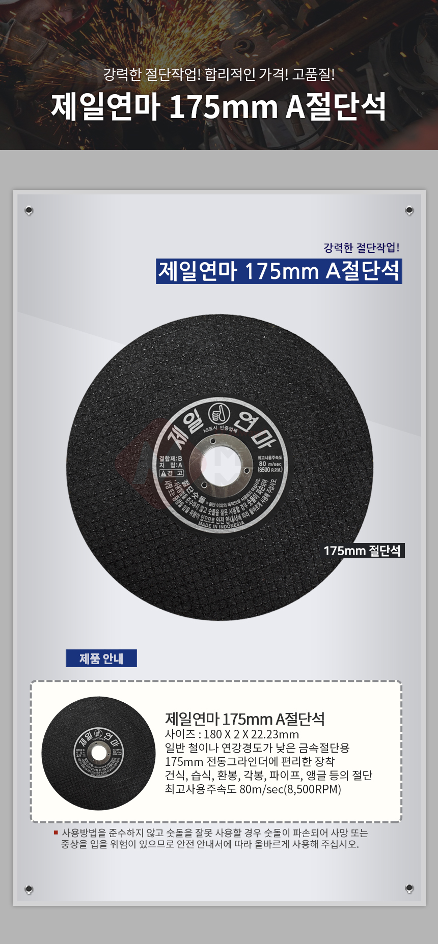 제일연마 7인치 A절단석 그라인더날