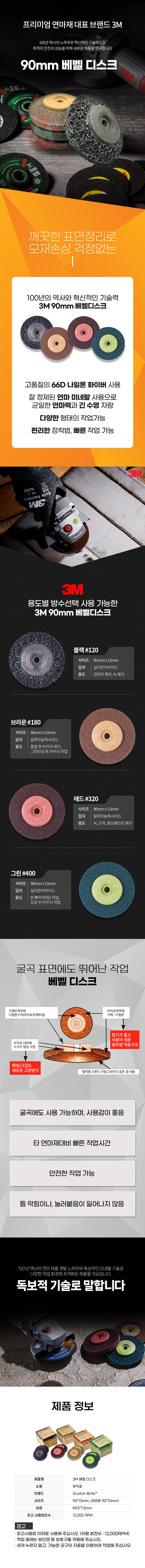 3M 스카치브라이트 베벨 디스크 레드 320방 부직포 수세미 녹 흠집 제거 그라인더날