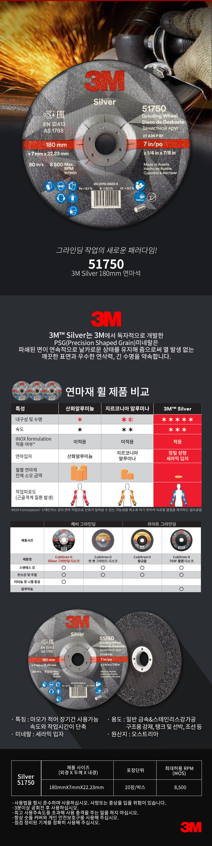 3M 실버 7인치 연마석 51750 그라인더날 연마 옵셋