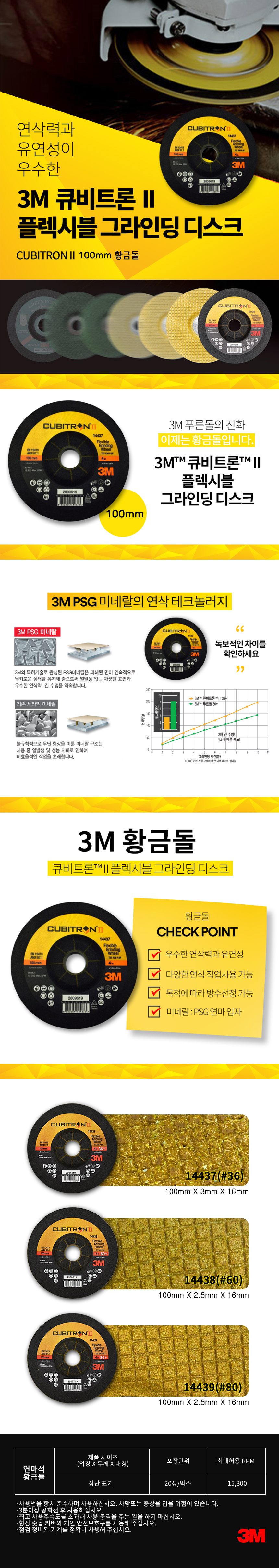 3M 큐비트론2 4인치 연마석 황금돌 그라인더날 옵셋