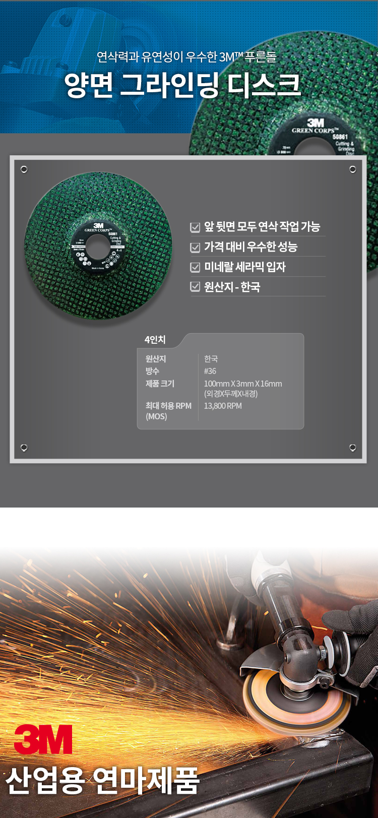 3M 4인치 양면 그라인딩 디스크