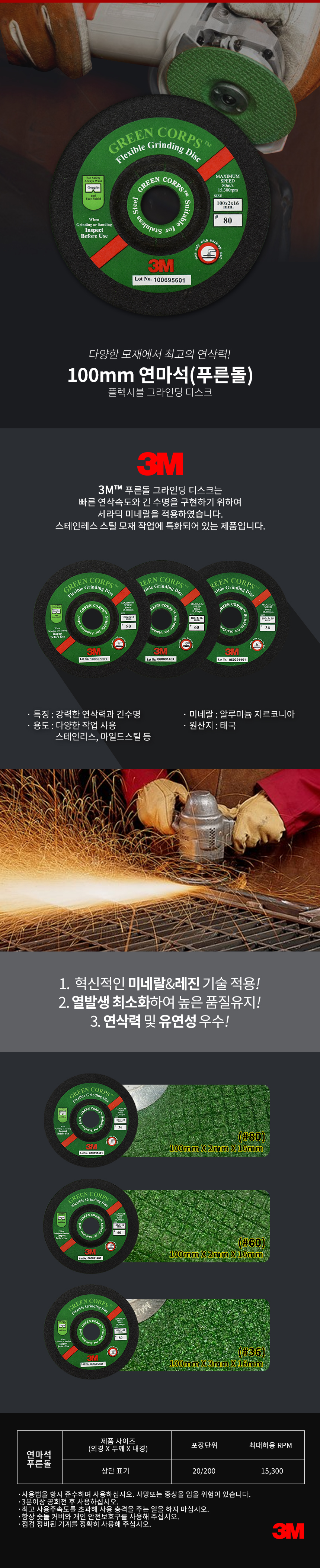 3M 4인치 연마석 푸른돌 그라인더날 옵셋