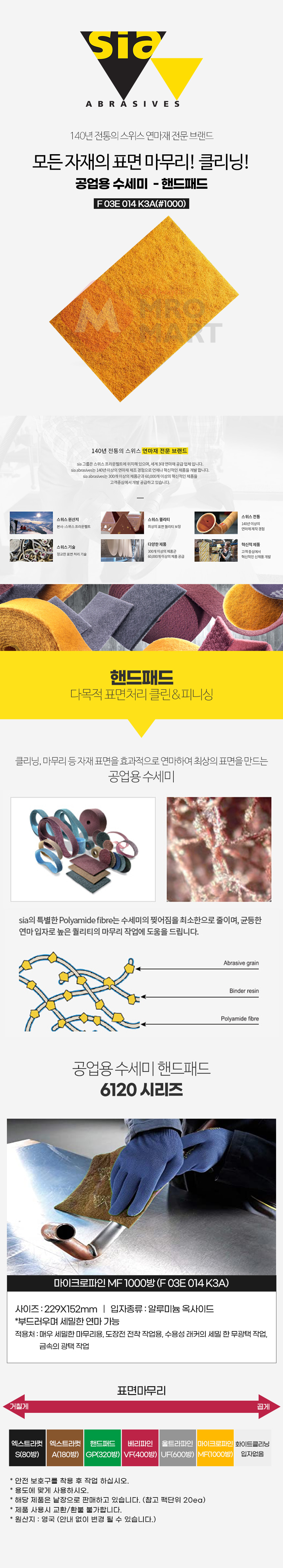 시아 공업용 수세미 핸드패드 낱장 마이크로 파인 MF 1000방 F03E014K3A 229X152 금속 광택 마무리 샌딩 사포