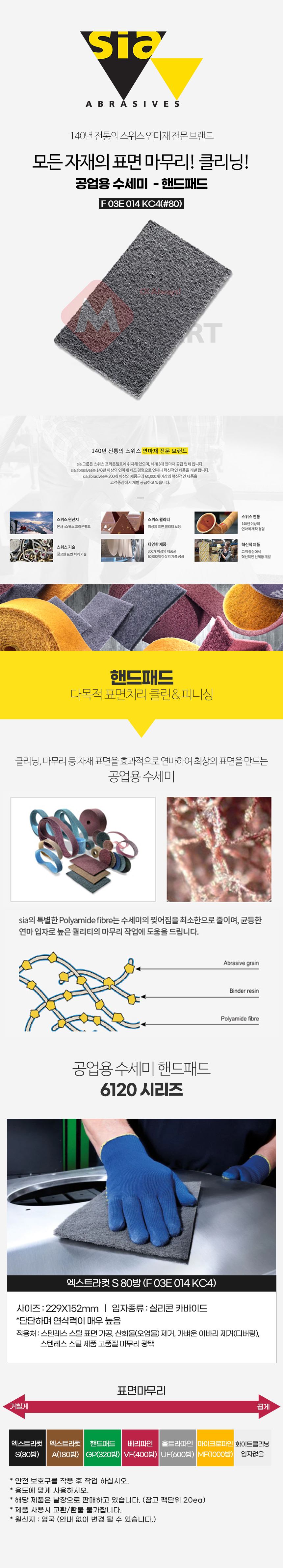 시아 공업용 수세미 핸드패드 낱장 엑스트라컷 S 80방 F03E014KC4 229X152 스텐 이물질 녹 제거 샌딩 사포