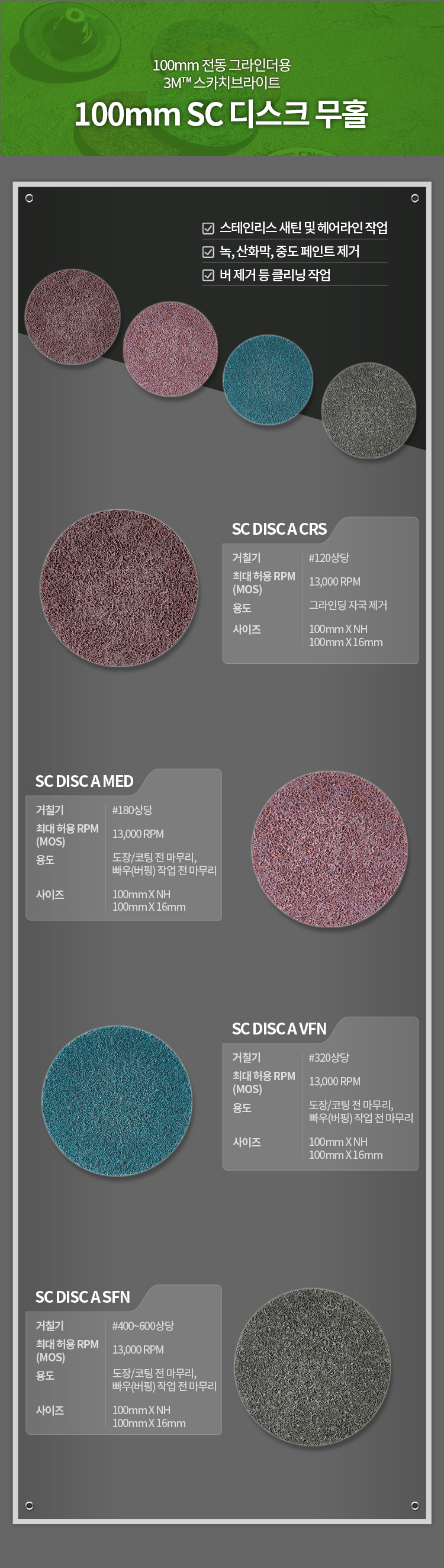 3M 스카치브라이트 SC 디스크 4인치 무홀 수세미 녹 페인트 이물질 제거