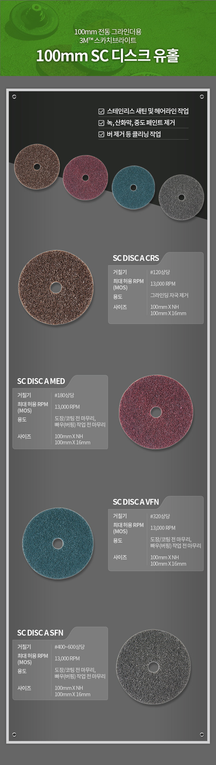 3M 스카치브라이트 SC 디스크 4인치 유홀 수세미 녹 페인트 이물질 제거