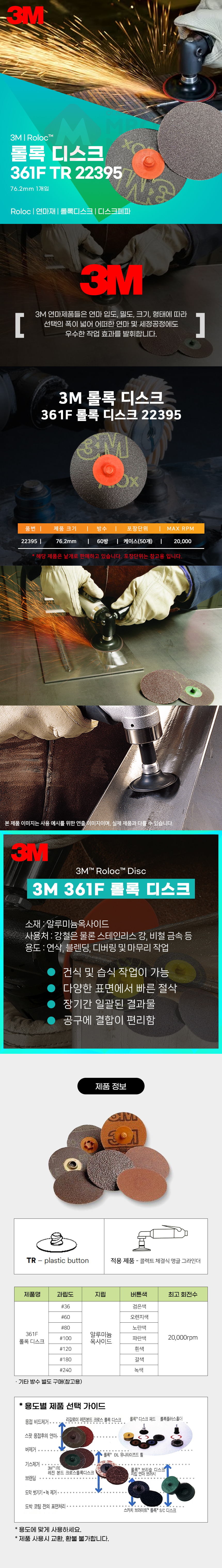 3M 22395 롤록 디스크 361F TR 3인치 60방 낱개 사포 페파 연마 녹 제거