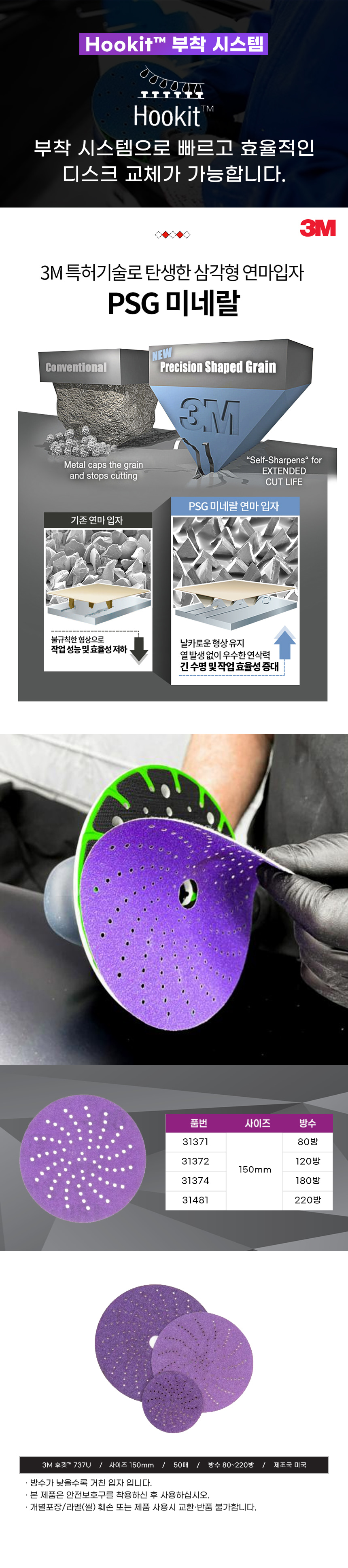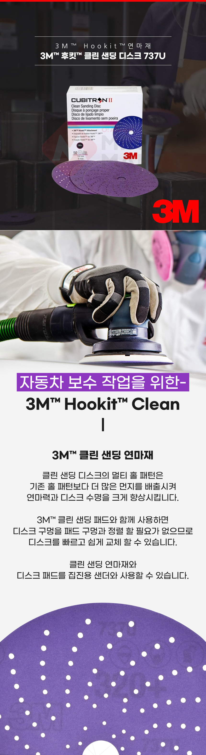 3M 737U 31481 큐비트론 후킷 클린 샌딩 디스크 6인치 220방 50매