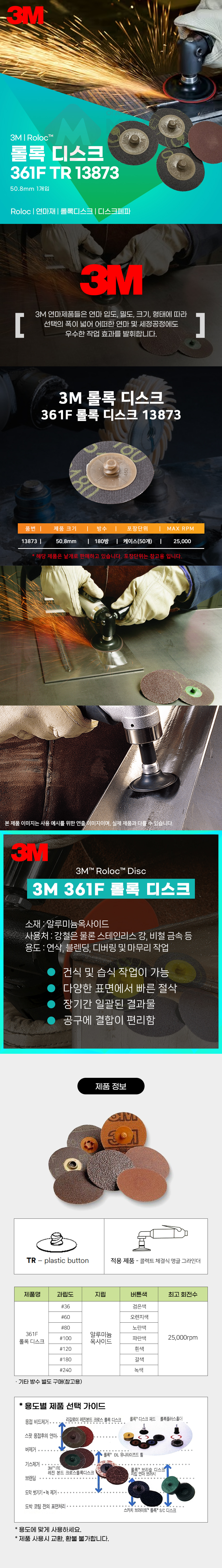 3M 13873 롤록 디스크 361F TR 2인치 180방 낱개 사포 페파 연마 녹 제거