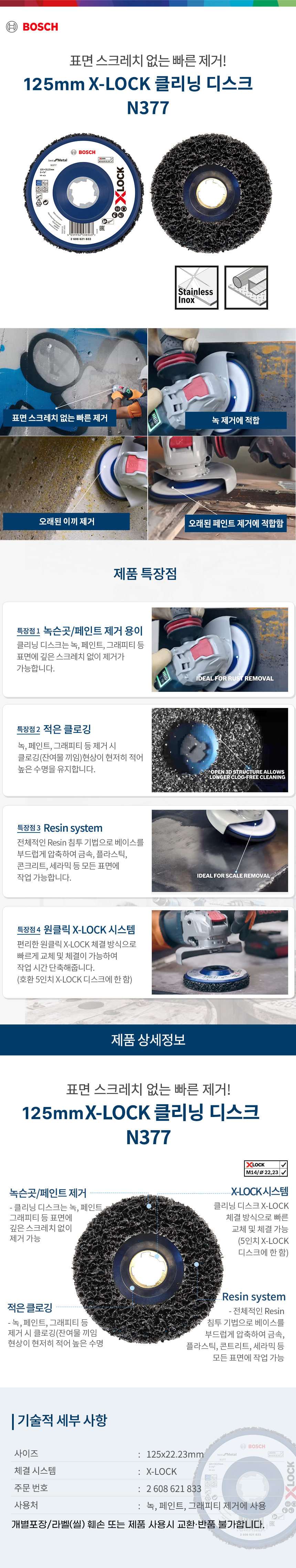 보쉬 XLOCK 전용 5인치 N377 클리닝 디스크 녹 페인트 제거 그라인더날 2608621833