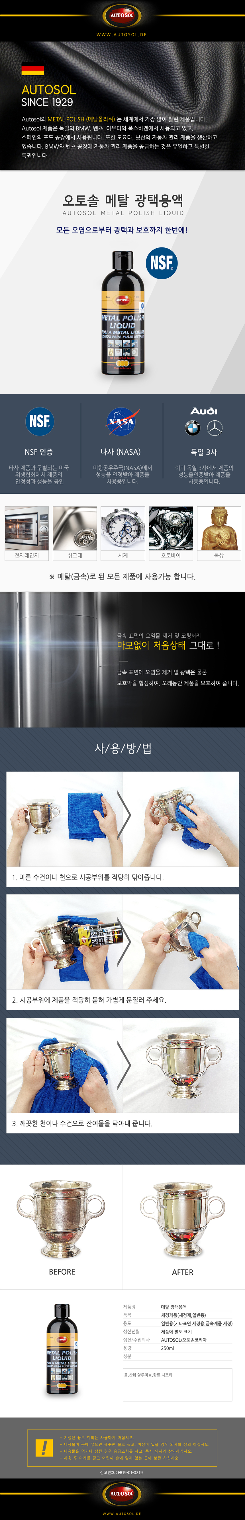 오토솔 메탈 광택제 리퀴드 250ml 금속 광택 세정