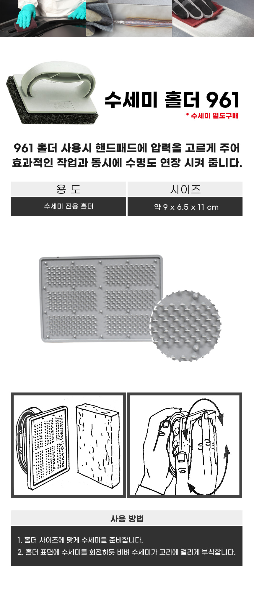 3M 수세미 홀더 손잡이 961 트위스트 락 탈부착 청소 연마 도장 녹 제거