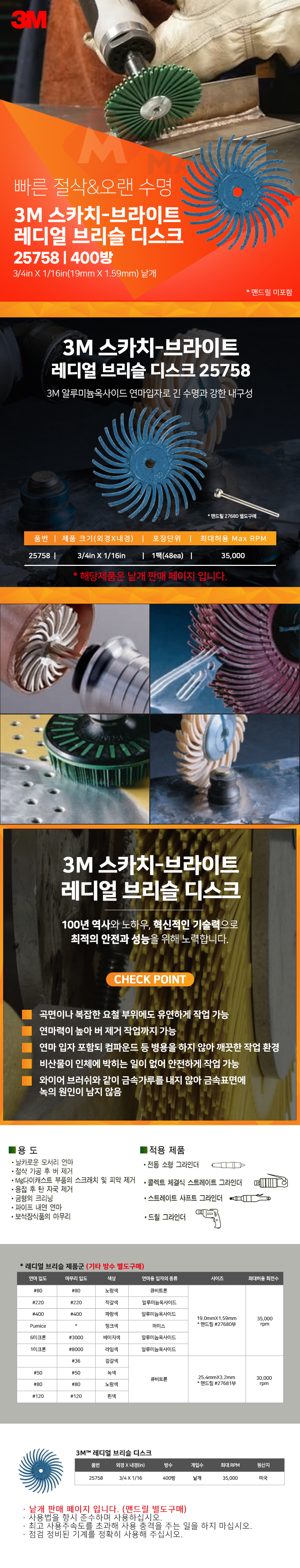 3M 스카치브라이트 레디얼 브리슬 디스크 25758 400방 3/4인치 낱개 연마 브러쉬 마무리 버 제거
