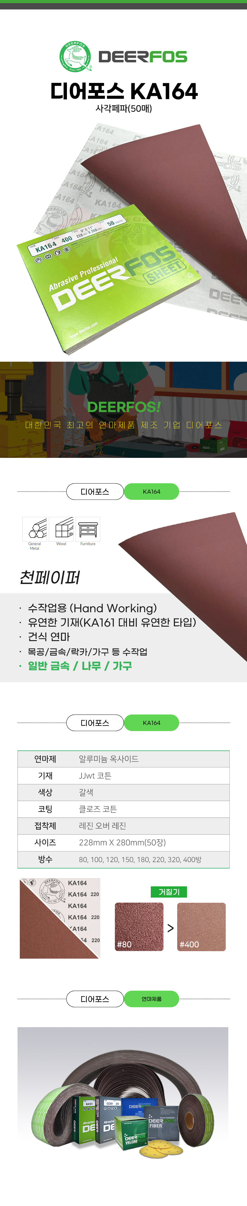 디어포스 KA164 사각 페파 400방 50매 천사포 천페파 목재용 목공