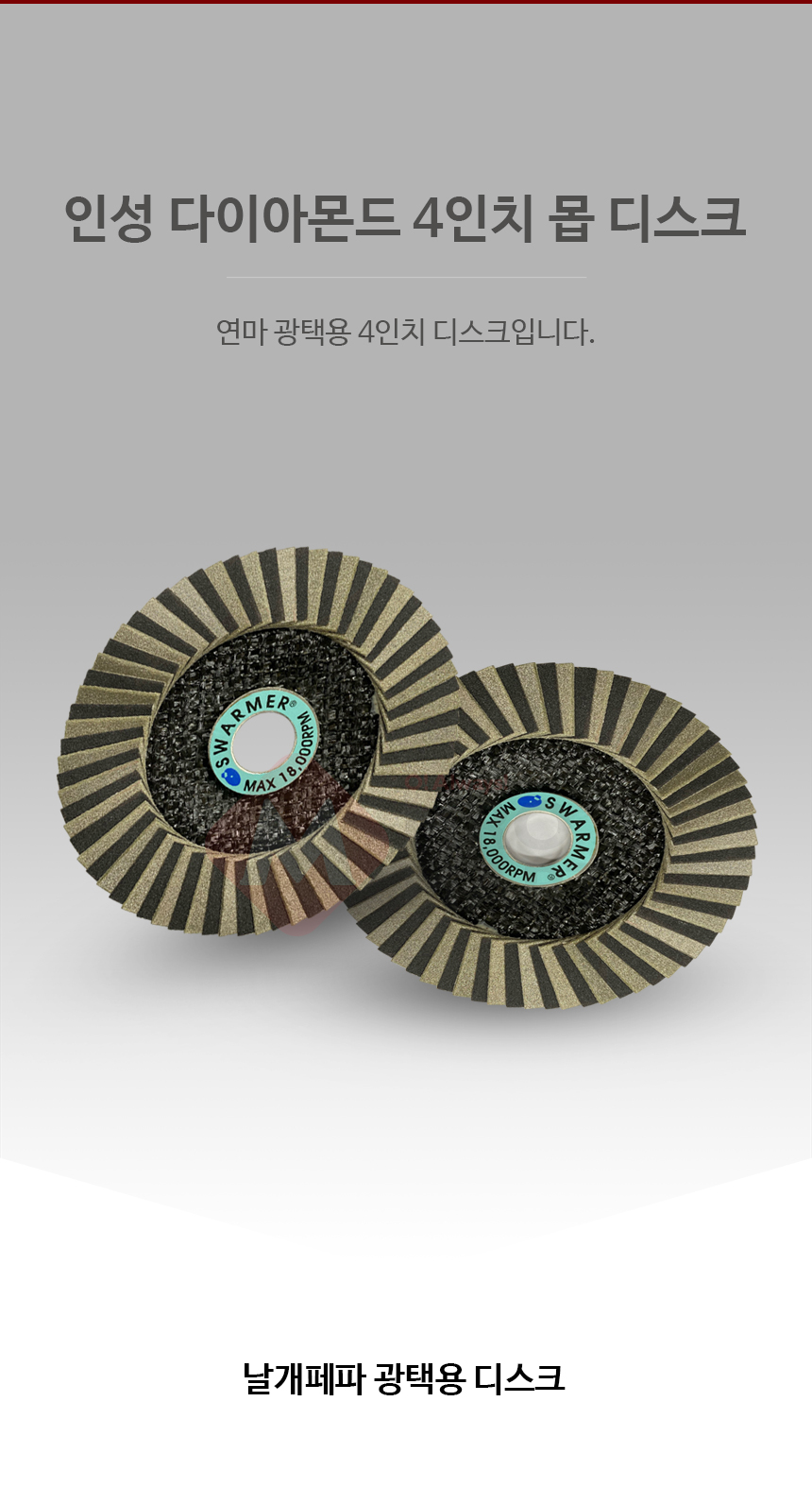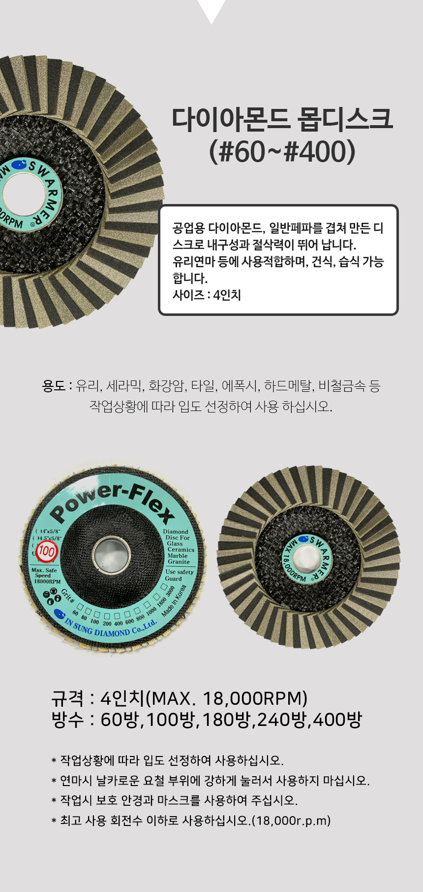 인성 다이아몬드 4인치 몹 디스크 날개 페파 사포 연마 광택 유리 세라믹 타일 다용도