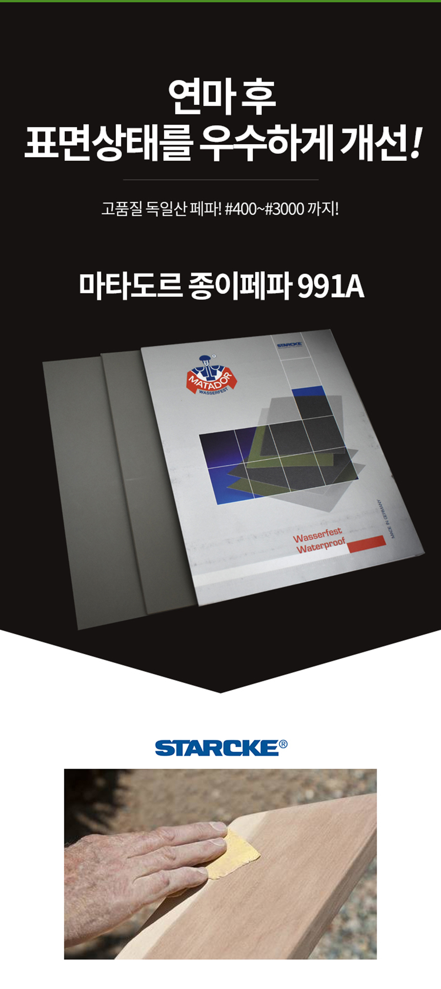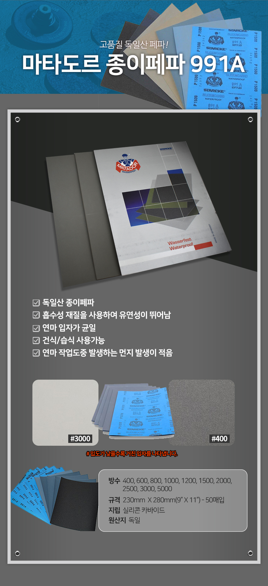 독일산 마타도르 종이 페파 991A 50매 샌딩 페이퍼 사포 빼빠