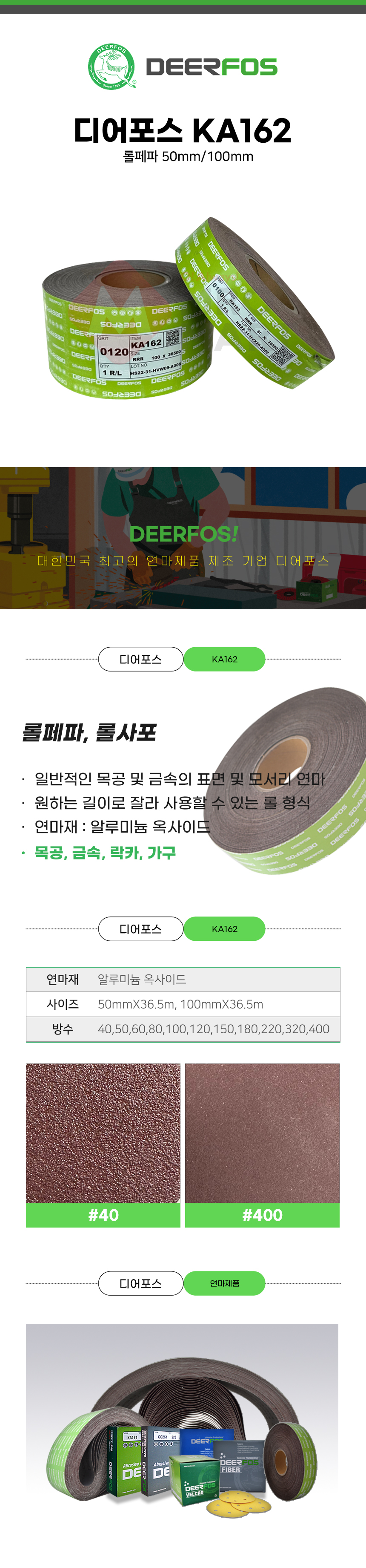 디어포스 KA162 롤 페파 사포 50mmX36.5M 샌딩 연마 목재 금속
