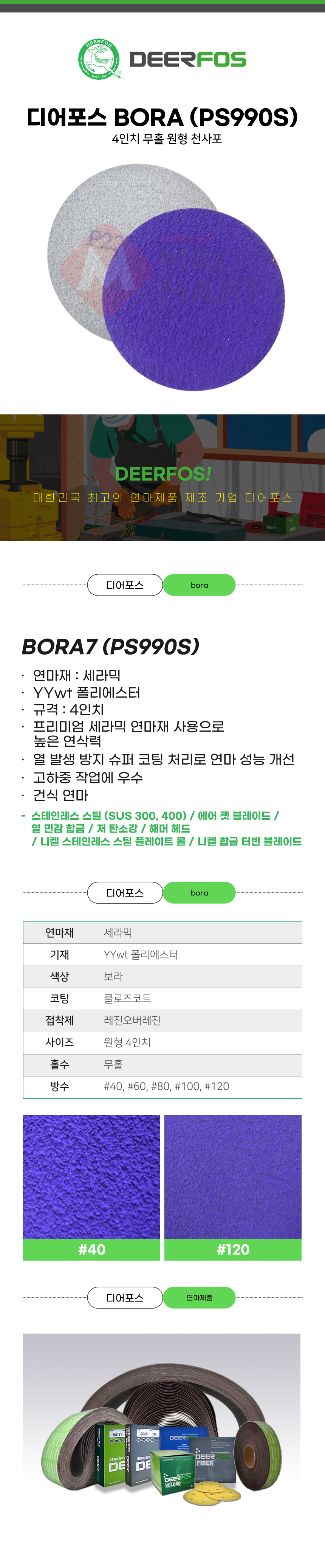 디어포스 4인치 보라 낱장 PS990S 원형 페파 사포 찍찍이 연마포 천사포 금속 샌딩 샌더
