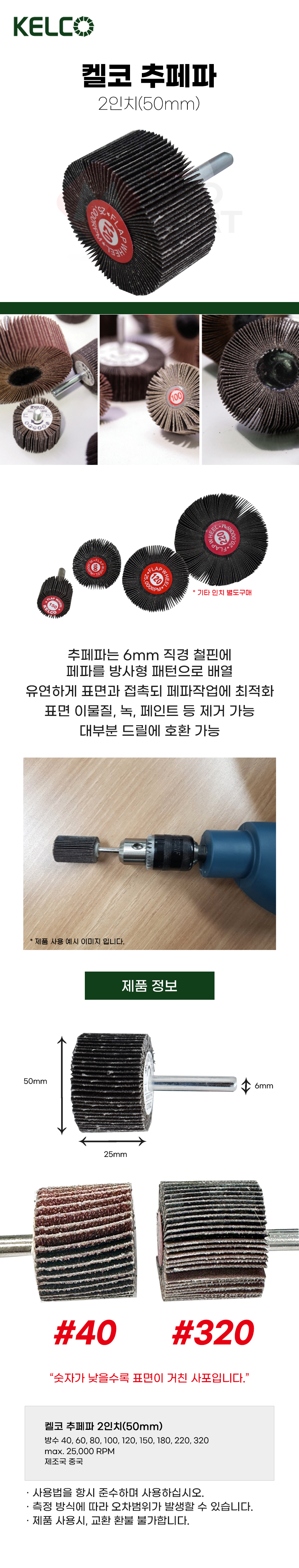켈코 2인치 50mm 추 페파 페이퍼 사포 원형 원통 연마 이물질 페인트 제거 드릴용