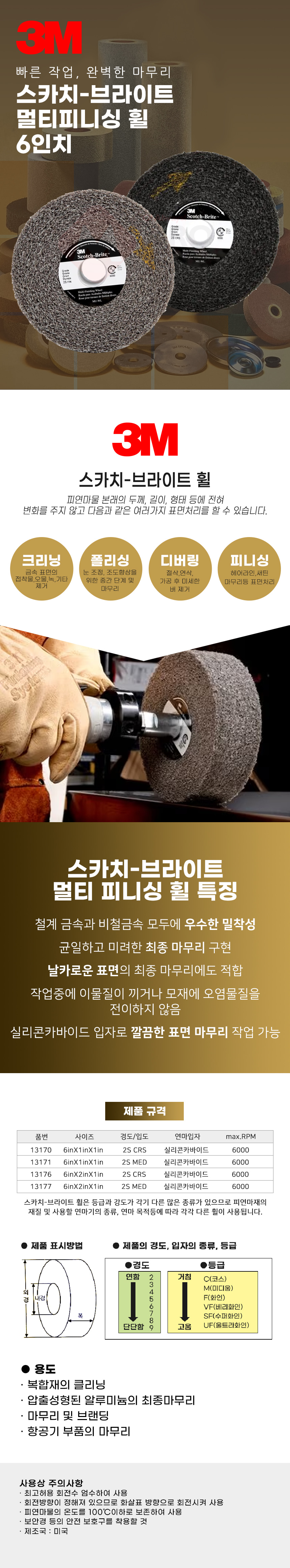 3M 스카치브라이트 멀티 피니싱 휠 13177 6inX2inX1in 2S MED 탁상 그라인더용 연마 크리닝 마무리