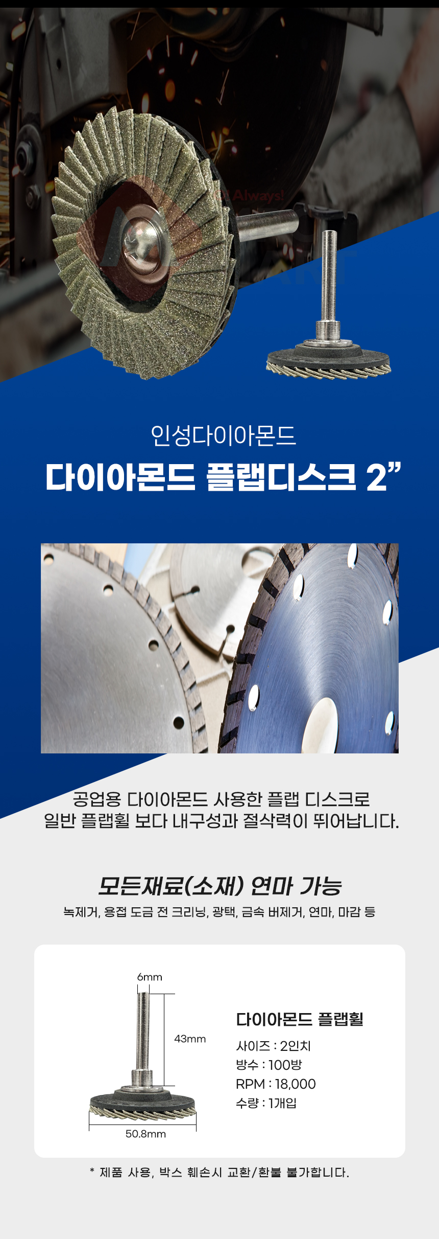 인성 다이아몬드 플랩 디스크 2인치 100방 1개입
