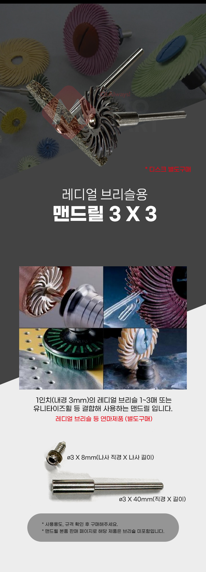 맨드릴 3X3 전용 액세서리 레디얼 브리슬 유니타이즈휠 디스크 연마