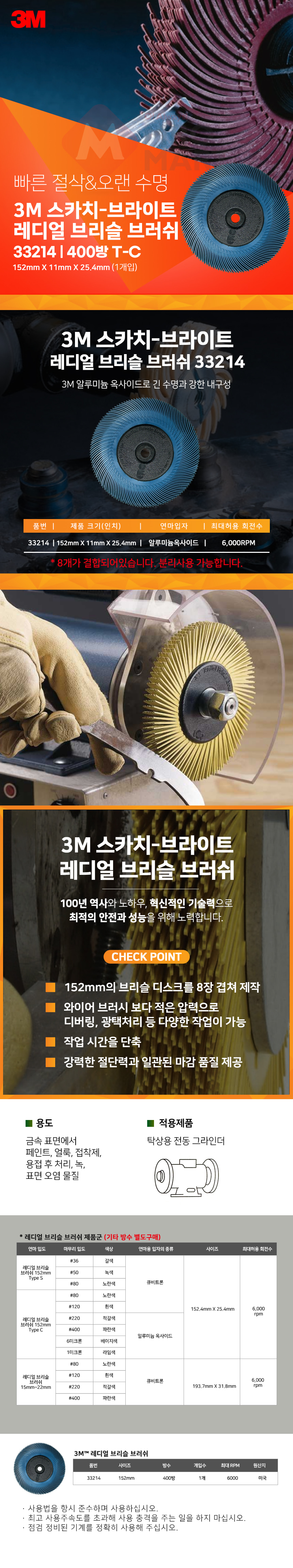 3M 스카치브라이트 레디얼 브리슬 브러쉬 33214 6인치 400방 연마 녹 페인트 제거