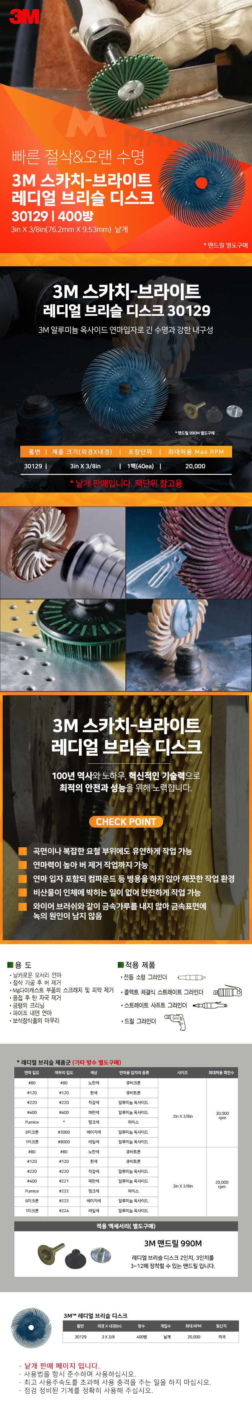 3M 스카치브라이트 레디얼 브리슬 디스크 30129 3인치 400방 낱개 연마 브러쉬 마무리 버 제거
