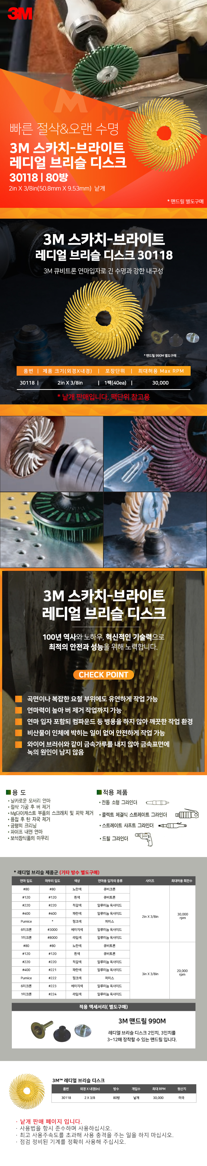 3M 스카치브라이트 레디얼 브리슬 디스크 30118 2인치 낱개 연마 브러쉬 마무리 버 제거