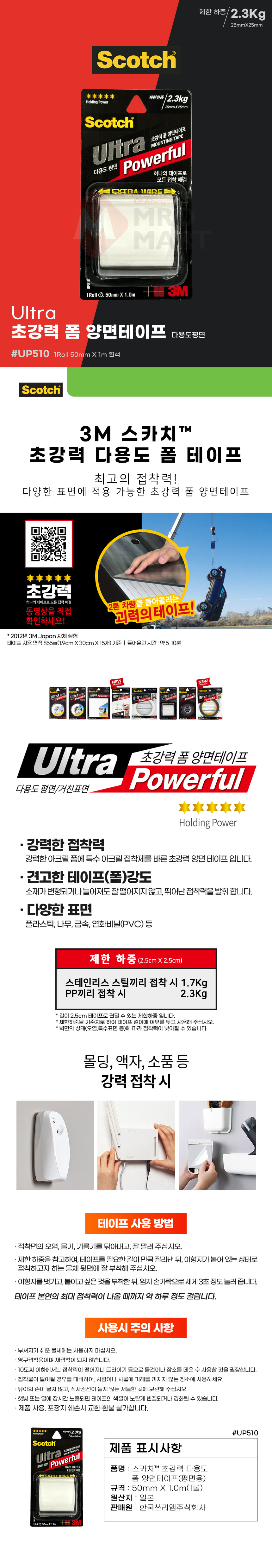 3M 스카치 울트라 UP510 초강력 폼 양면 테이프 50mmX1m 흰색 1롤 다용도 평면