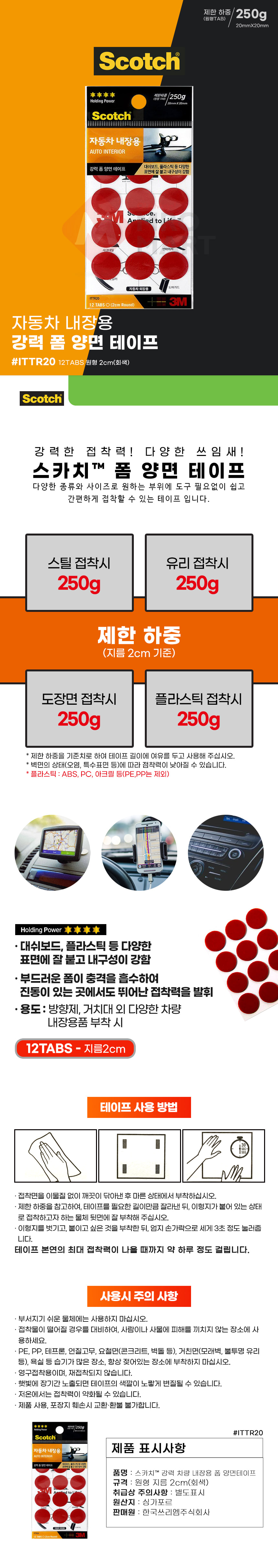 3M 스카치 자동차 내장용 강력 원형 폼 양면 테이프 ITTR20 회색 20mm