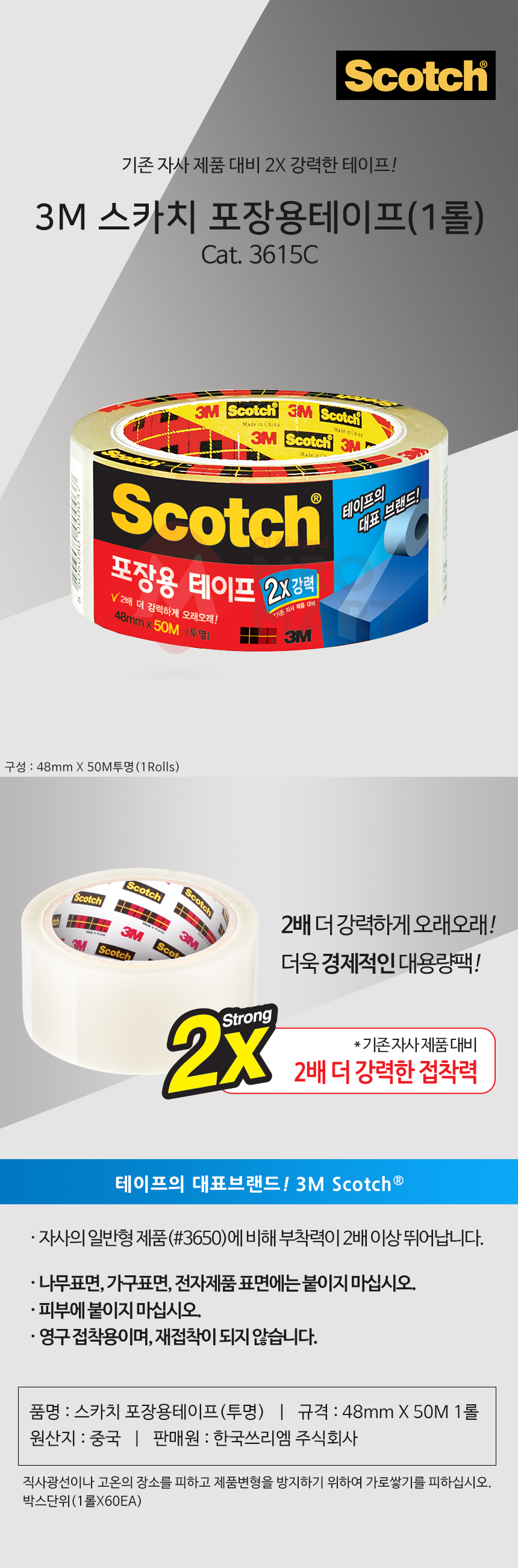 3M 스카치 포장용 투명 박스 테이프 48mmX50M 3615C 낱개