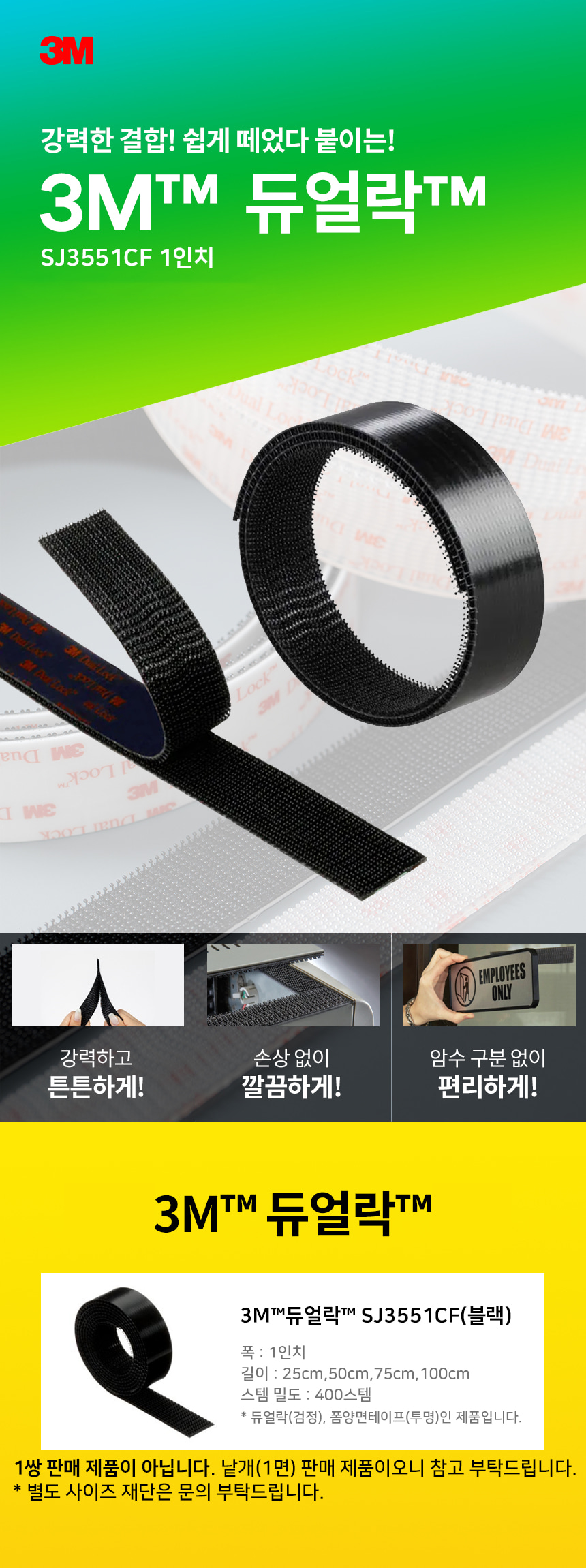 3M 듀얼락 SJ3551CF 탈부착 테이프 폭1인치