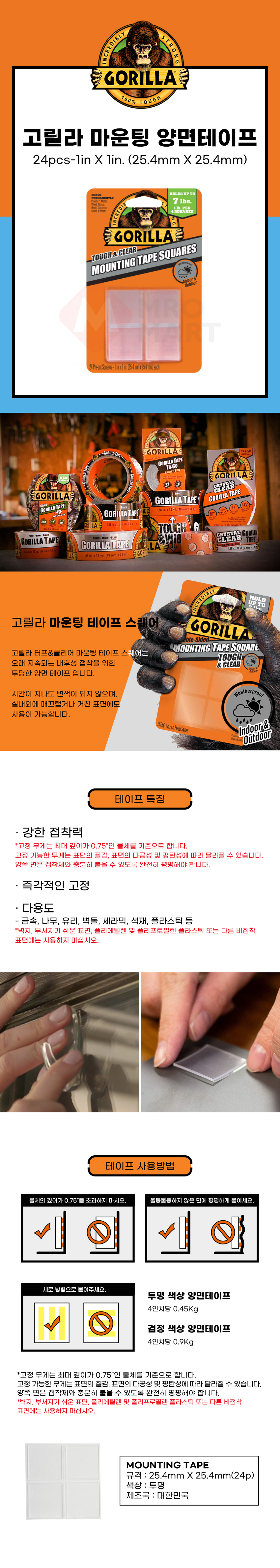 고릴라 마운팅 양면 테이프 1in 사각 24개입 투명