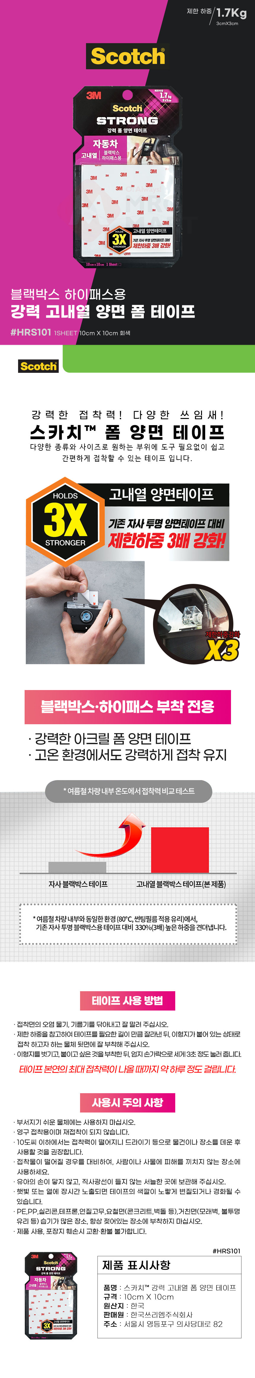 3M 스카치 HRS101 강력 고내열 폼 양면 테이프 회색 10cmX10cm 자동차 차량 블랙박스 하이패스