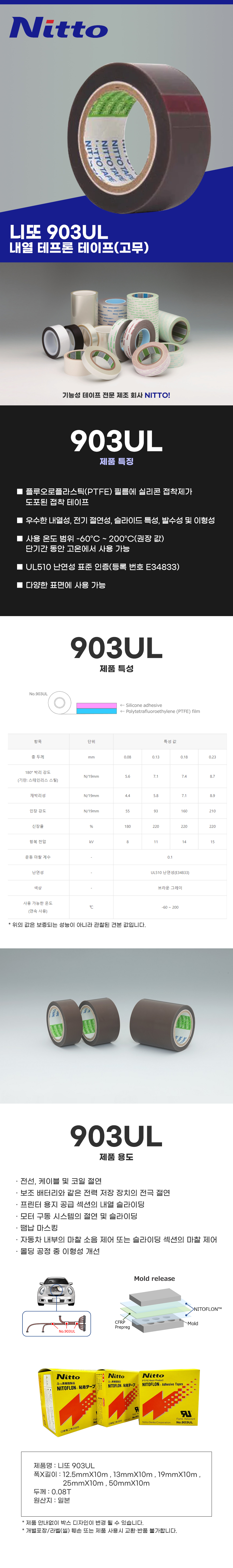 니또 903UL 내열 테프론 테이프 12.5mmX10m 고무 고내열 전선 케이블 마스킹 차량 모터