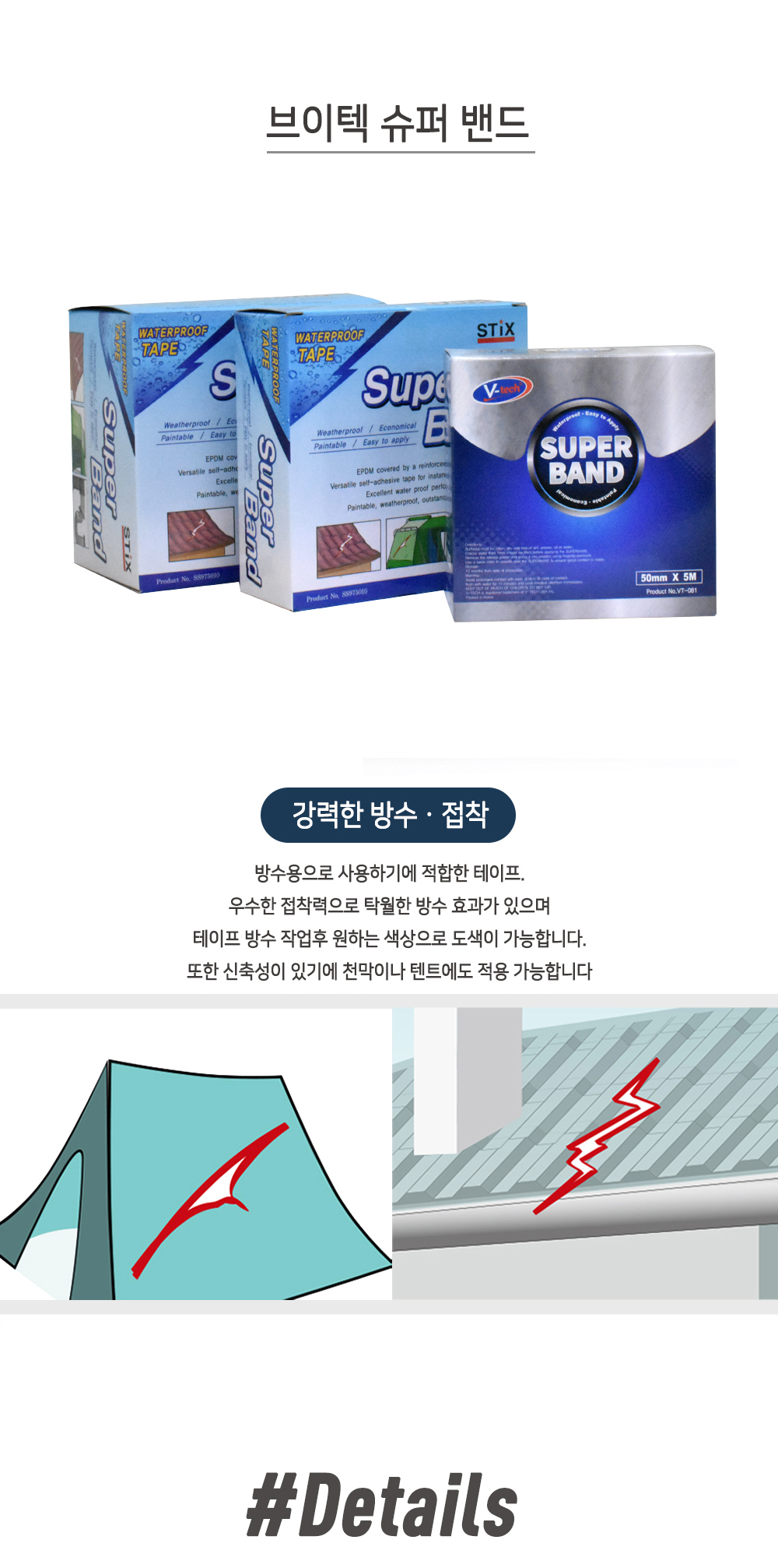 브이텍 방수테이프 슈퍼밴드 보수 천막 파이프 50mmX5M