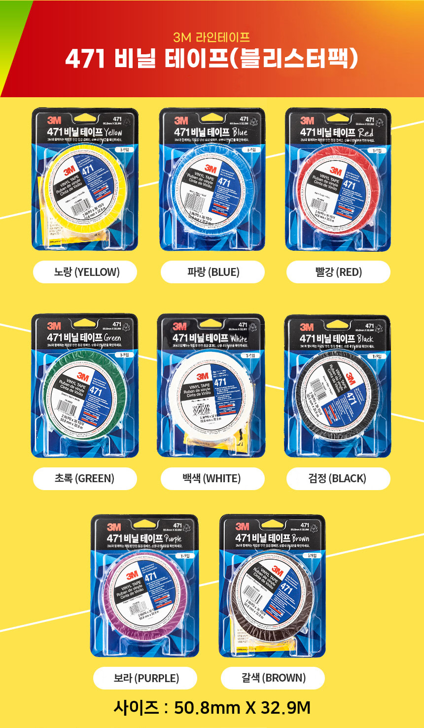 3M 471 바닥 라인 테이프 블리스터팩(퍼플) 안전 위험 표시 공간 구획