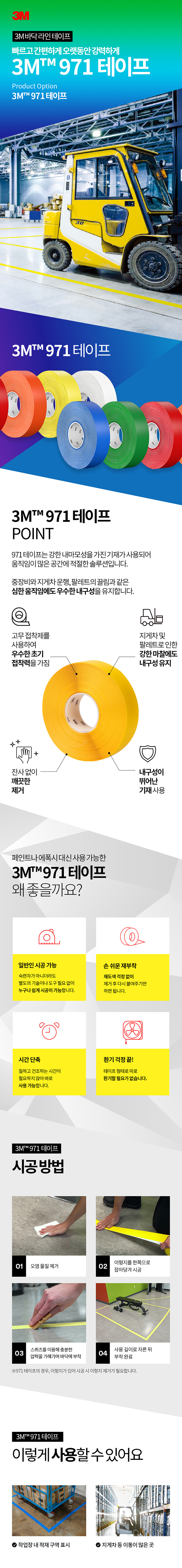 3M 971 라인 테이프 4인치 36YD 안전 위험 표시 공간 구획