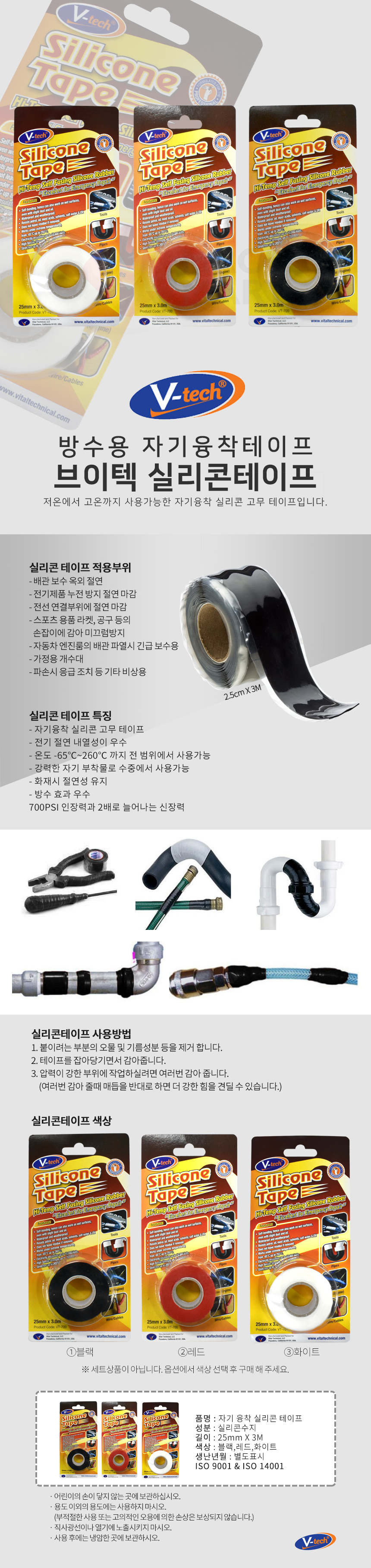 브이텍 VT-700 실리콘테이프 전문가용 자기융착 실리콘 고무테이프