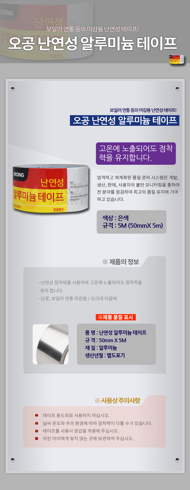 오공 난연성 알루미늄 테이프 50mmX5M 난로 보일러 연통 마감