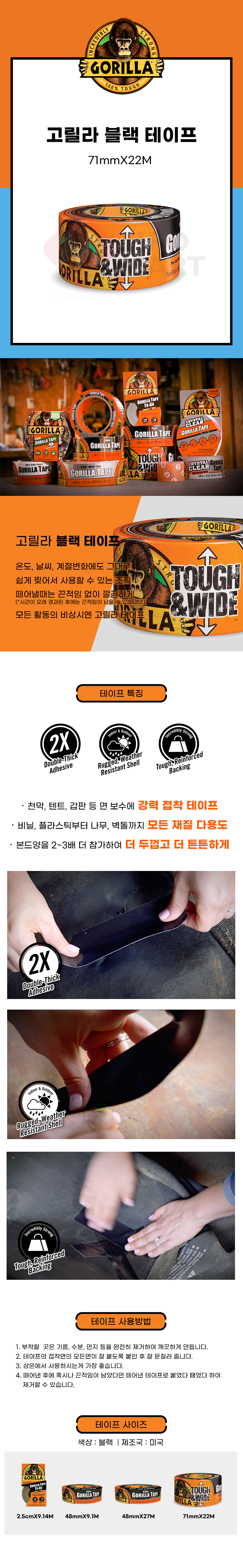 고릴라 블랙 테이프 71mm x 22M 덕 덕트 강력 보수 텐트 배관